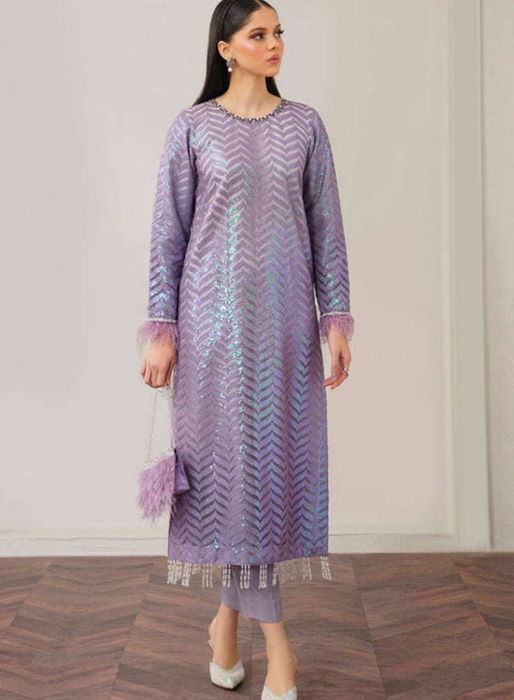 BAROUQE- Purple ORGANZA 3PC Lavender SEQUENCE EMBROIDERED SHIRT WITH ORGANZA SEQUENCE EMBROIDERED DUPATTA WITH SILK TROUSER