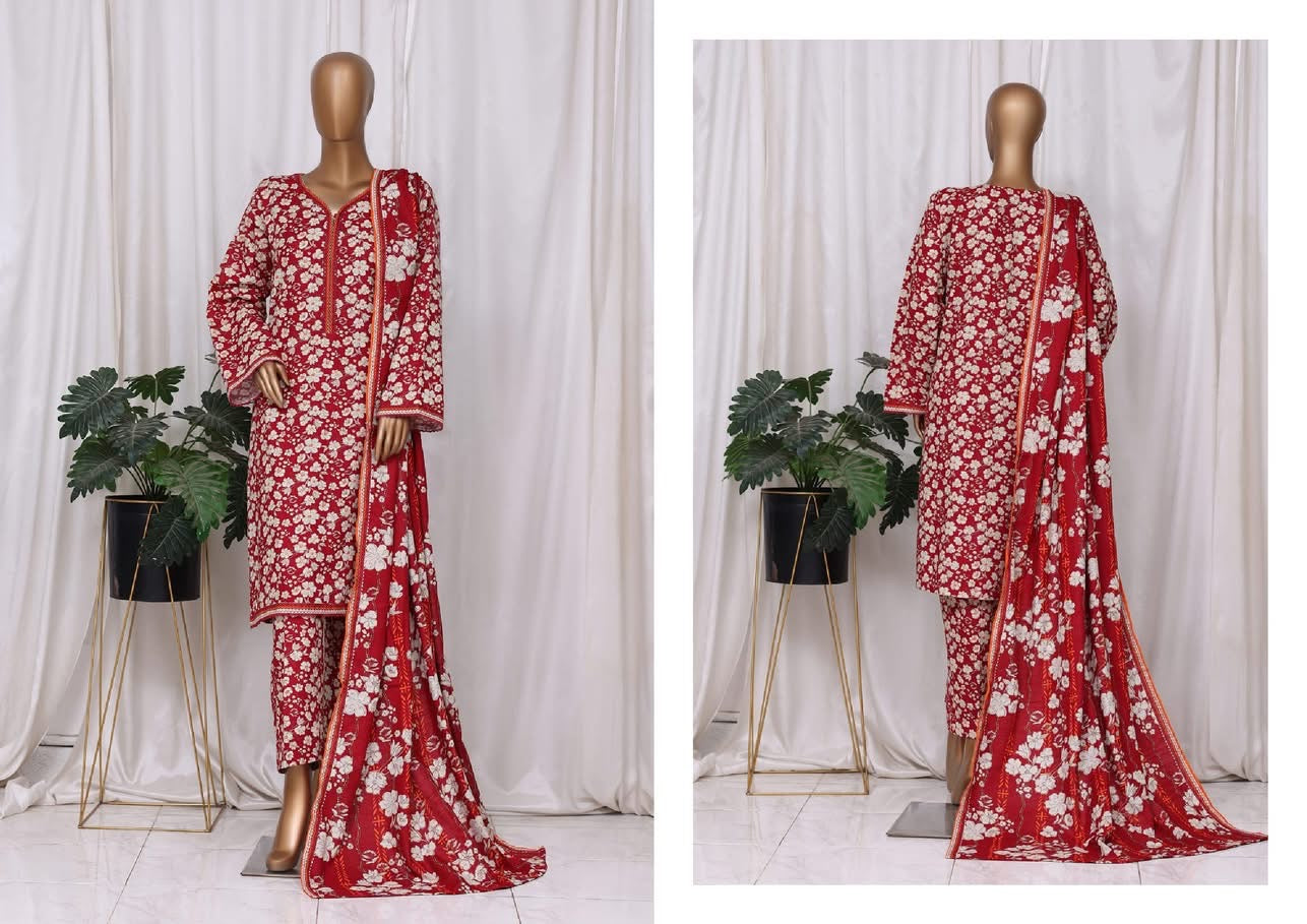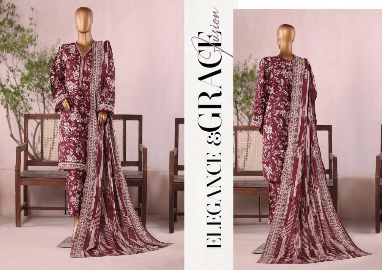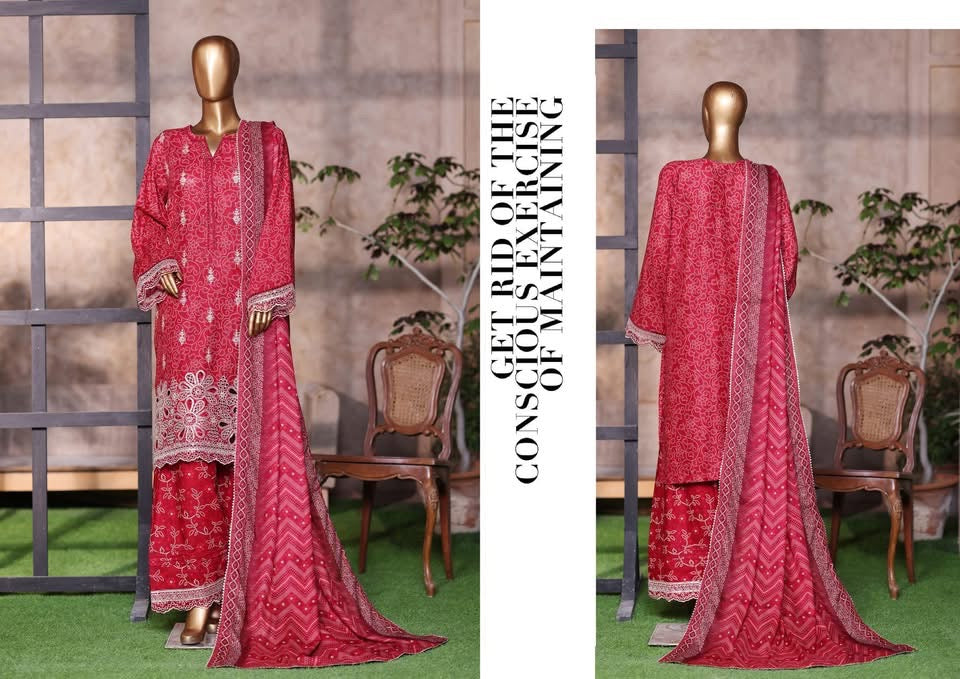 SHIRT : EMBROIDERED DUPATTA : PRINTED TROUSER : PLAIN