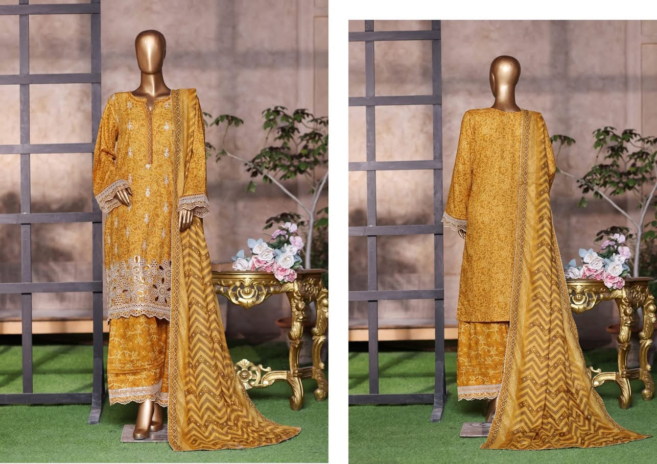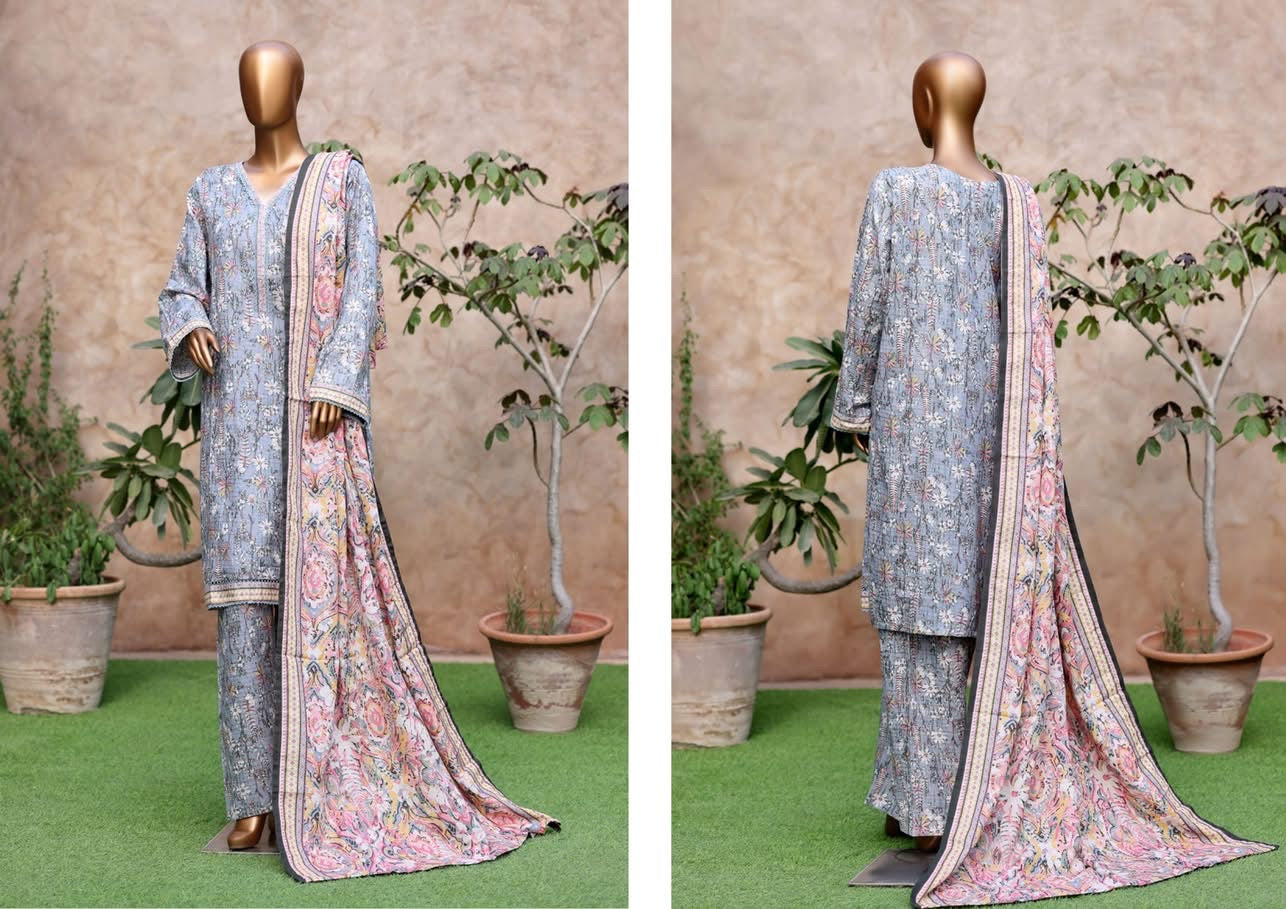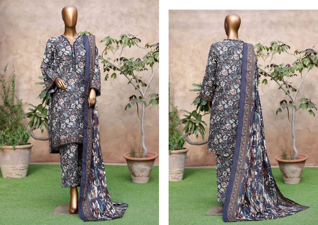 SHIRT : EMBROIDERED DUPATTA : PRINTED TROUSER : PLAIN