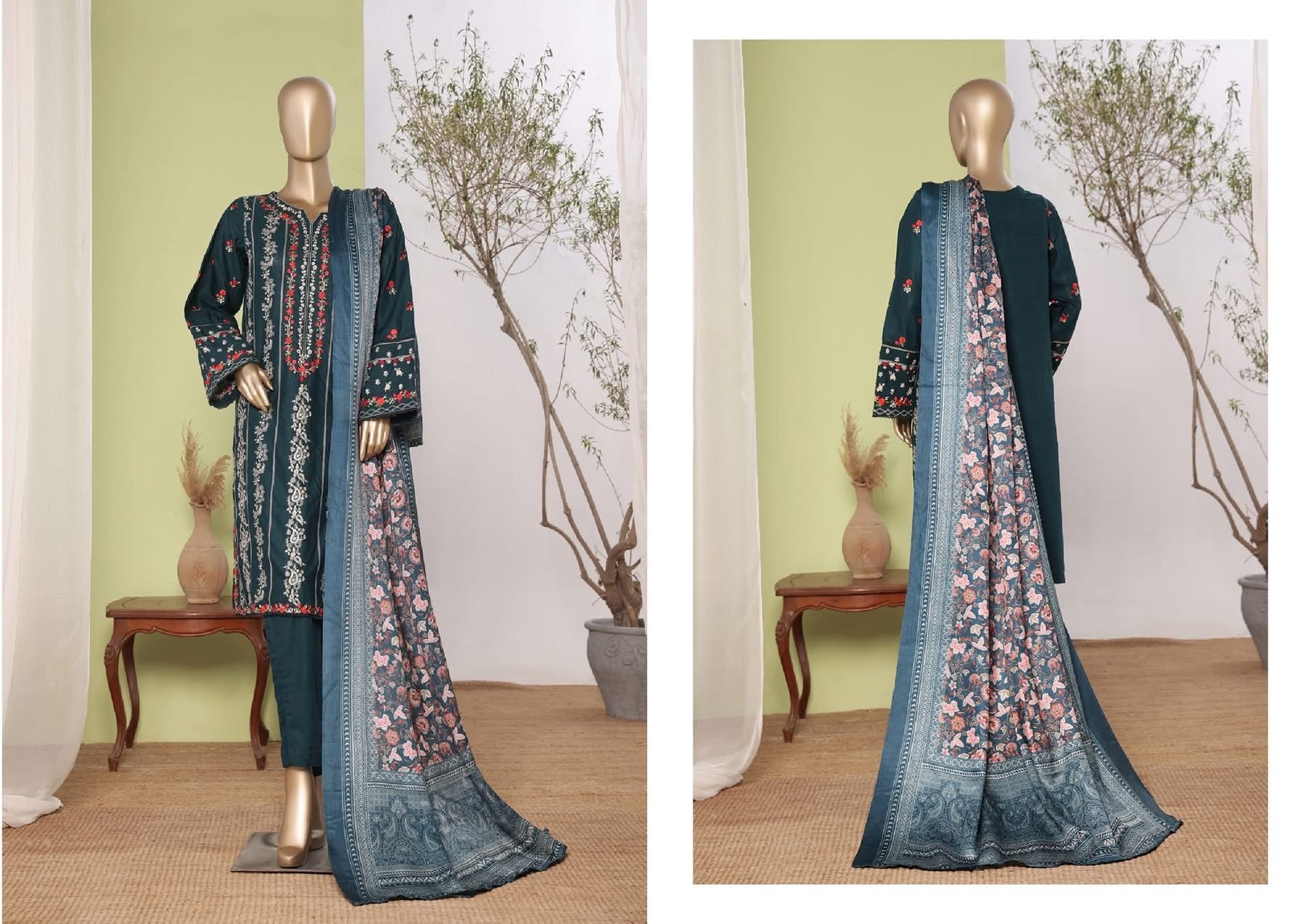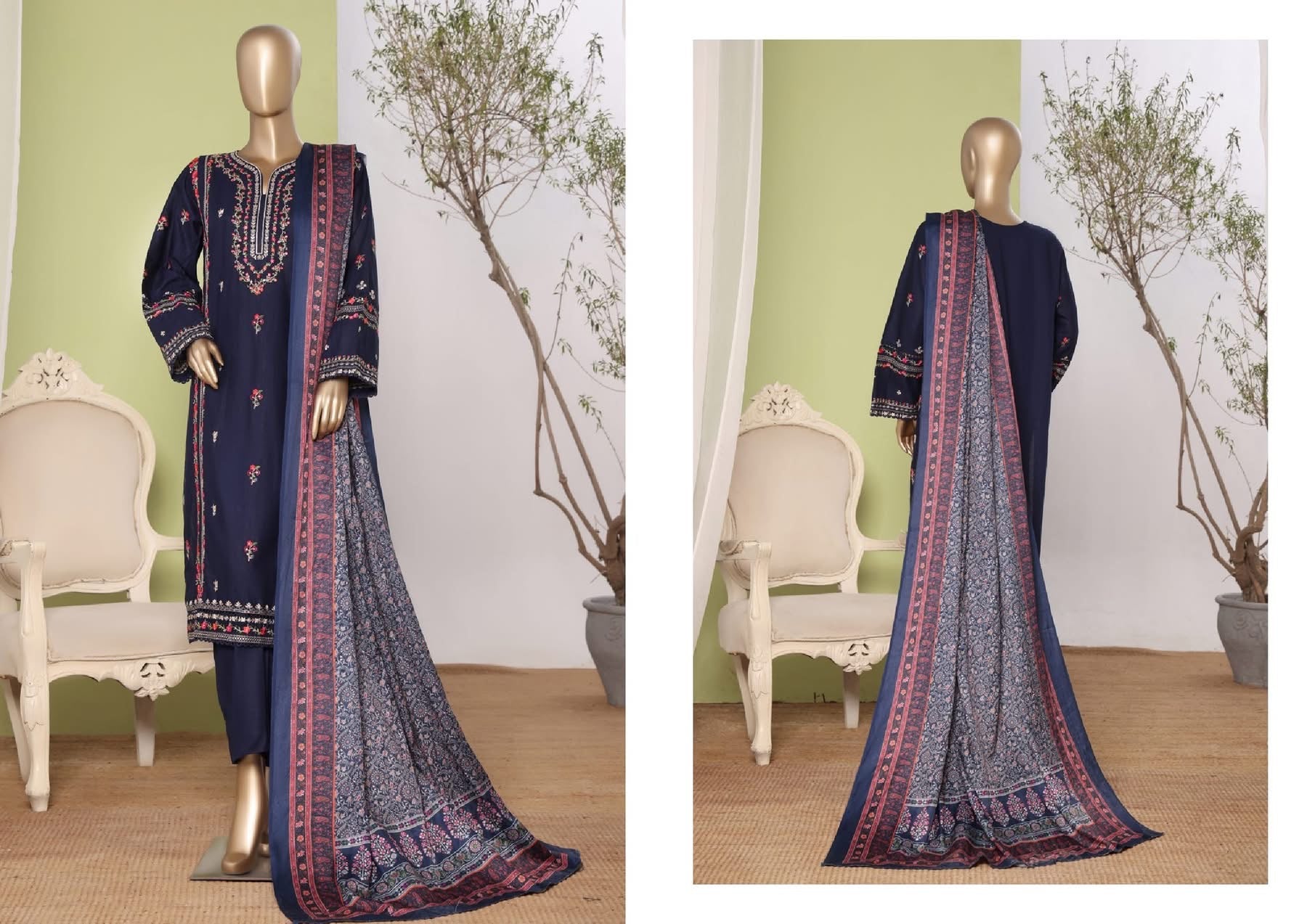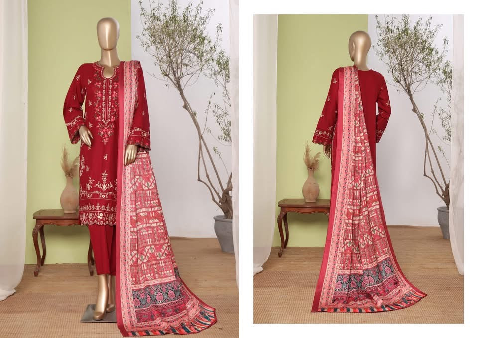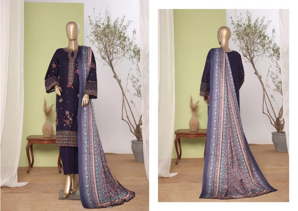 Details : 3 PIECE BIN SAEED EMBROIDERED KHADDAR STITCHED COLLECTION 2025