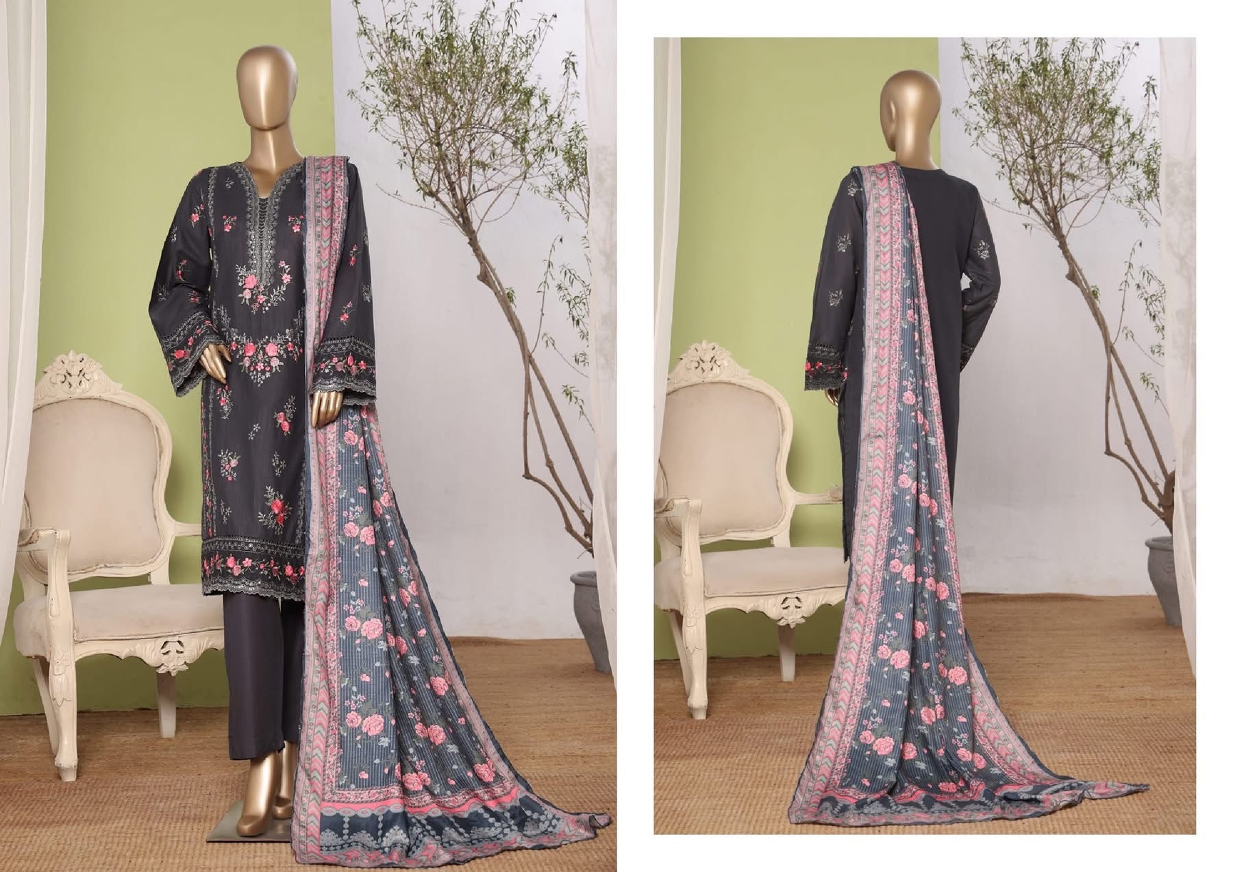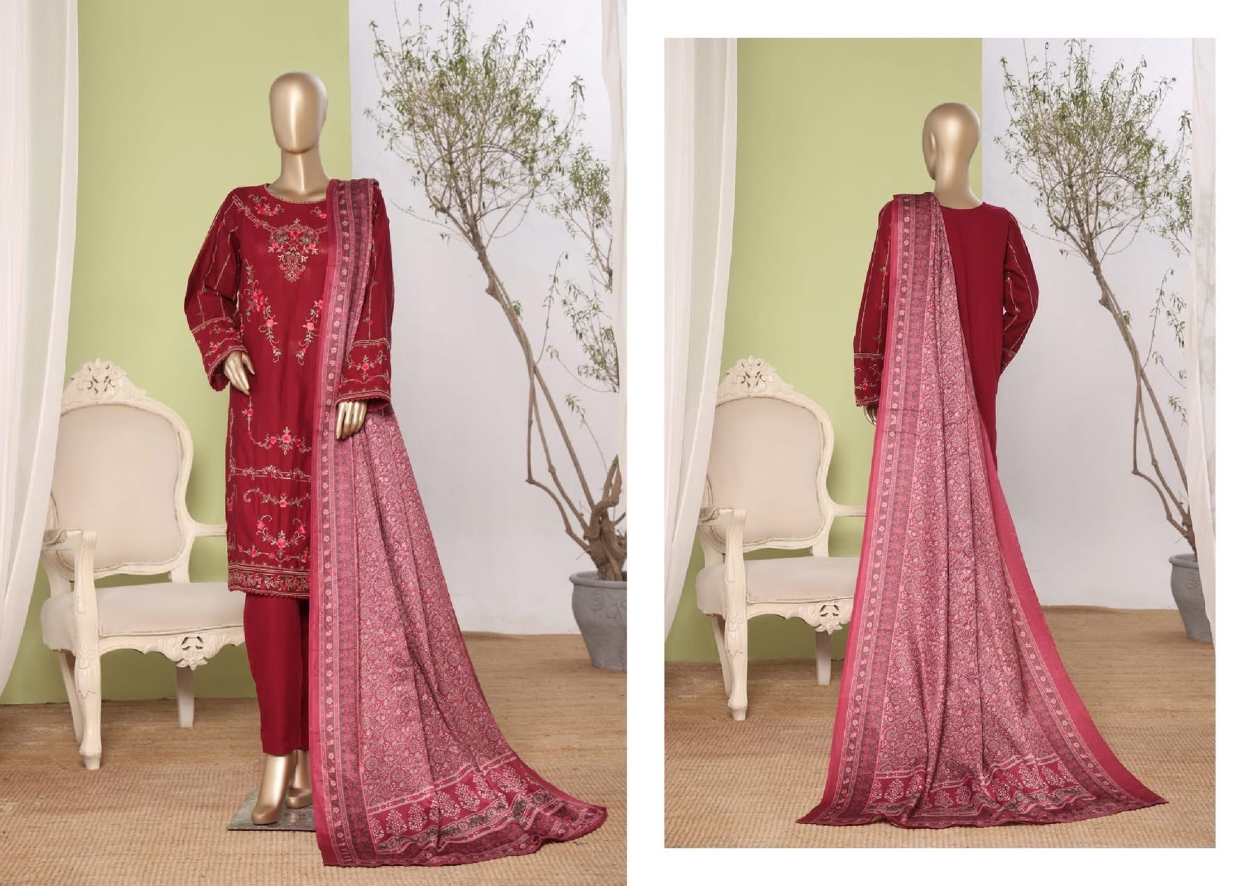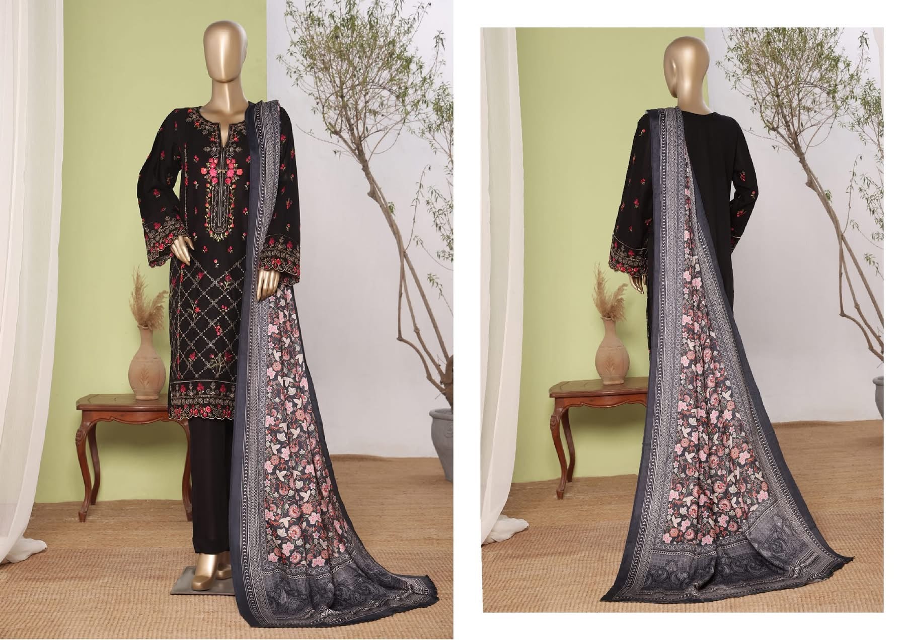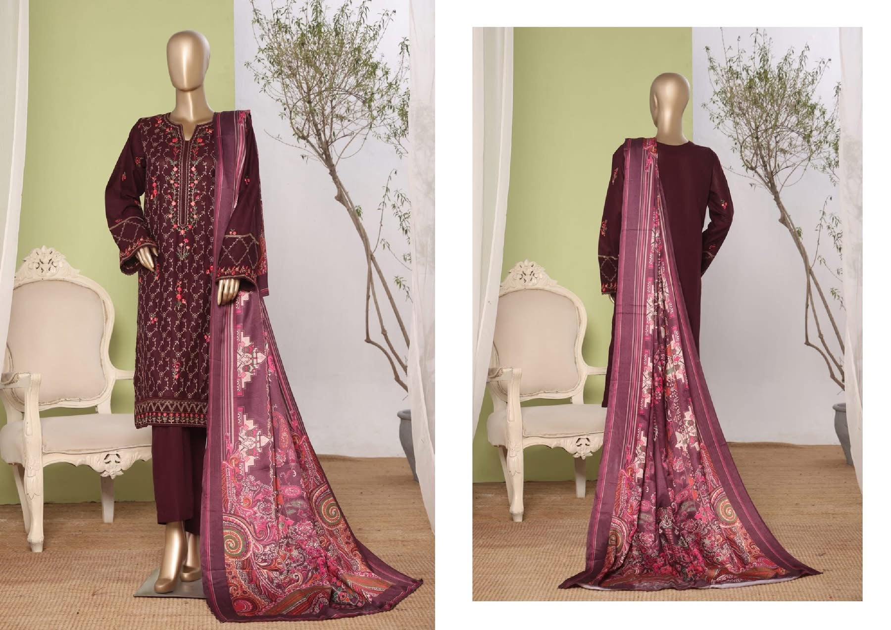 Details : 3 PIECE BIN SAEED EMBROIDERED KHADDAR STITCHED COLLECTION 2025